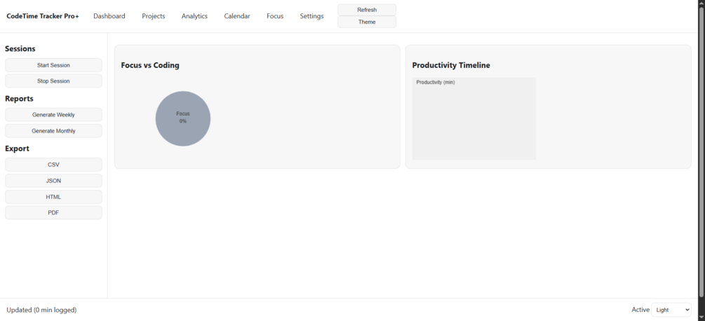 CodeTime Tracker Pro+ (Offline Edition) is a local-first productivity and time tracking dashboard made for developers, freelancers, and makers.