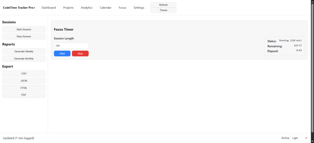 🔥 CodeTime Tracker Pro+ — Focus Smarter. Track Locally. Own Your Time.